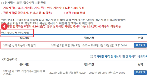 응시하고자하는 시험 접수하기 선택